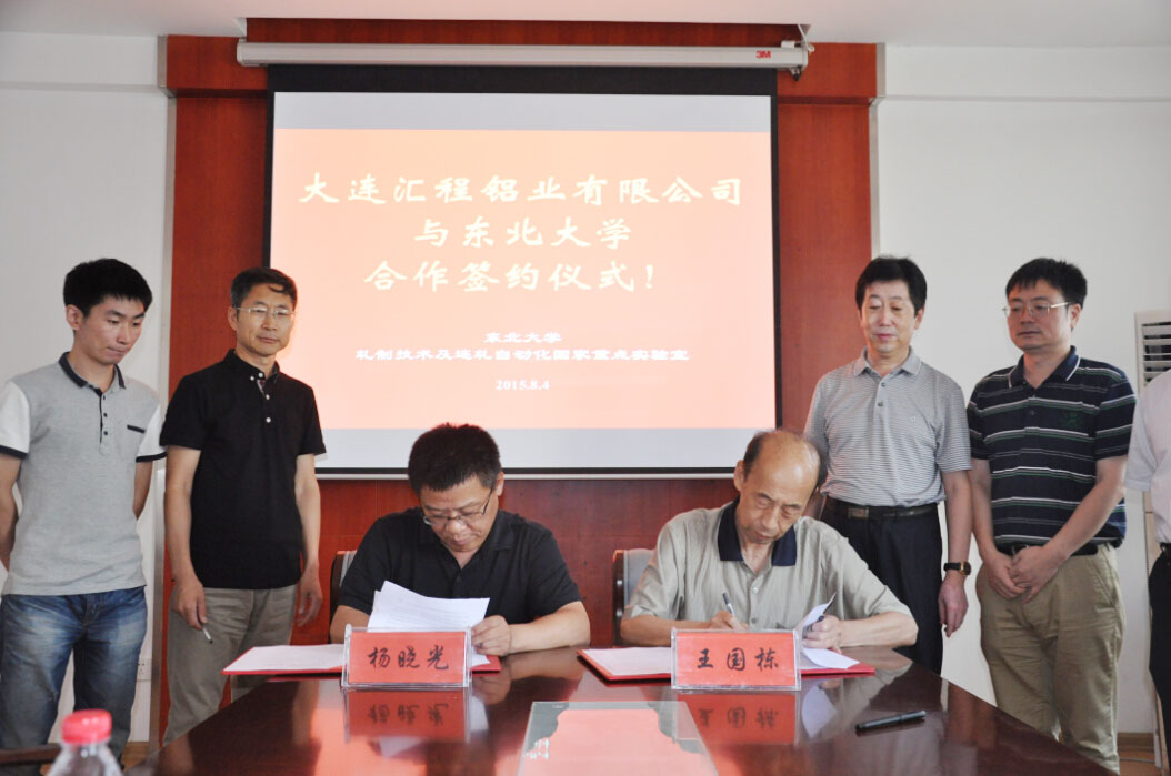 2015-08-04为促进公司技术创新、产品创新,8月4日,杨晓光董事长一行访问东北大学轧制技术及自动化国家重点实验室。受到王国栋院士、邸洪双教授、王昭东主任等老师欢迎。双方就铝加工生产的熔铸、轧制、热处理等关键技术进行了交流,为进一步加强合作,充分发挥各自优势,稳定的合作伙伴关系,双方签署了合作协议。同时参观了重点实验室中试设备、检测设备。